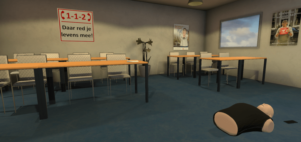 The virtual reality AED trainer is an application made for a platform called VR Brandveiligheid. This is a platform made by The Virtual Dutch Men, they wanted to expand the platform to an all-round safety trainer and not just a trainer for fire safety.
